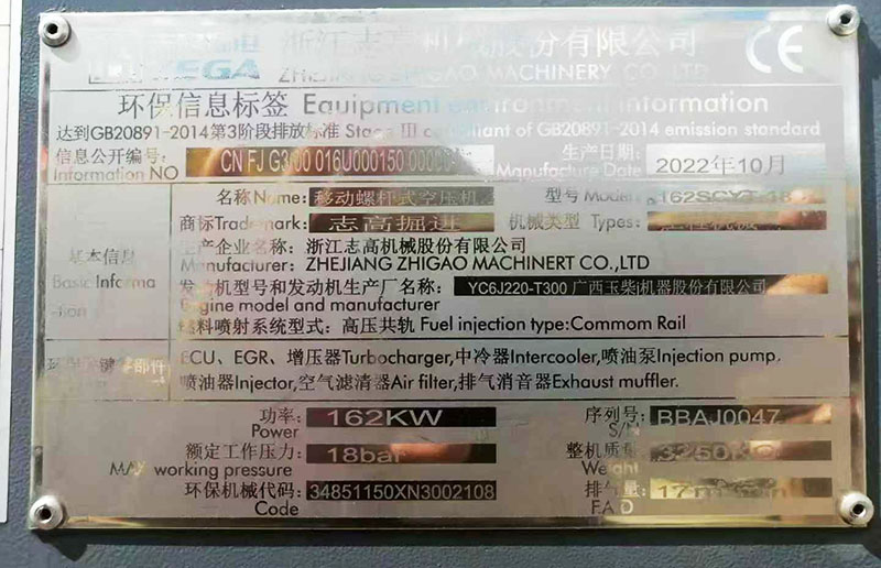 青海处理一套22年全新空压机,原装出场,工地项目中未使用过。