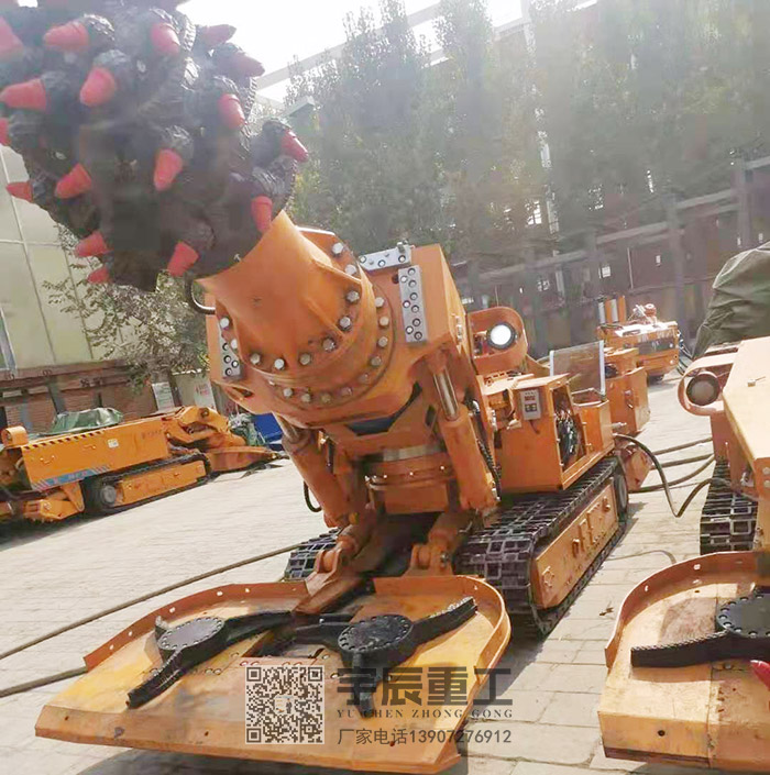 我司扒渣机采用液压马达驱动,性能强劲、爬坡力强、机动灵活,可在潮湿有积水的巷道里工作。输送方式分皮带输送机及刮板式输送。后部卸料部分高度可任意调整,并可折叠,进出巷道更加方便。采用独特的反铲系统来扒取岩石,将岩石扒入中央的刮板运输槽,并依靠刮板运输机构将岩石从前部输送至后部的接续设备中(各类矿车、皮带机、汽车等)。采用进口变速箱及马达驱动底盘,扒装臂采用先导式控制,因此铲装扒装有力,操作灵活方便。动力可使用电动机或柴油机,也可做成双动力形式。